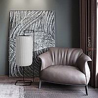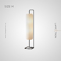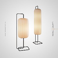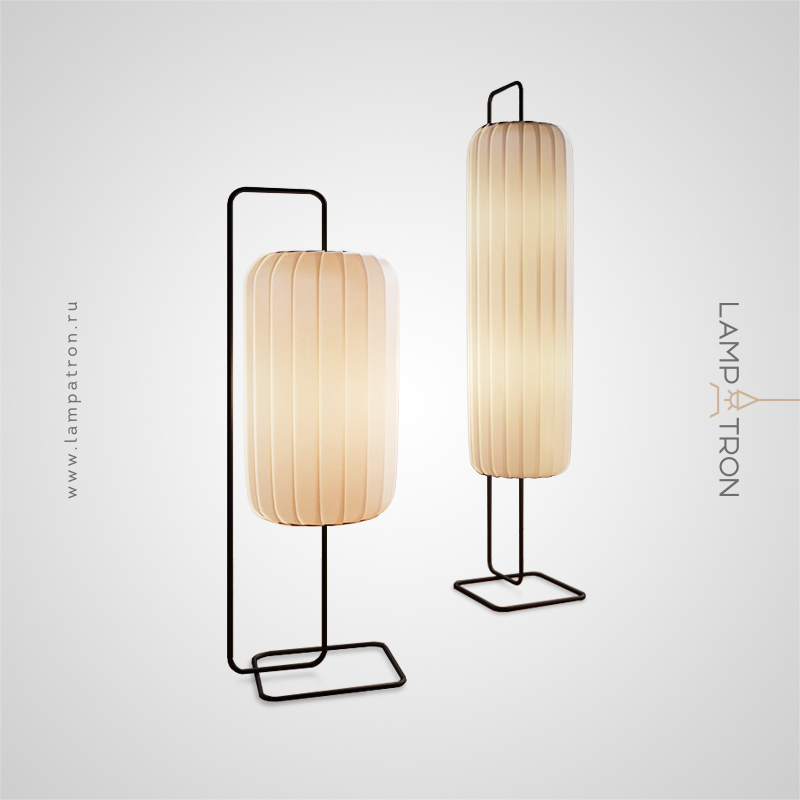 A series of floor lamps with embossed cylindrical lampshades made of white textiles in Japanese style