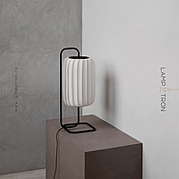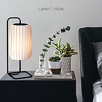 Table lamp with embossed cylindrical lampshade made of white Japanese style textiles