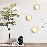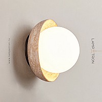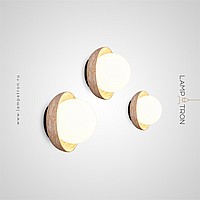 Wall lamp with a white spherical shade on a stone base in the shape of a bowl