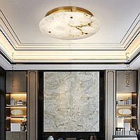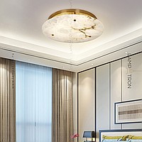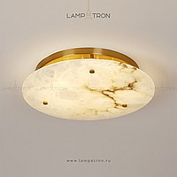 Ceiling LED lamp in the shape of a disk with a flat marble scatter on short vertical racks