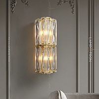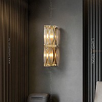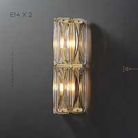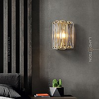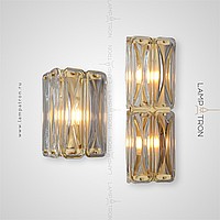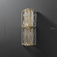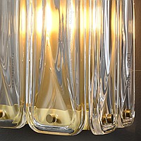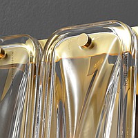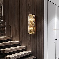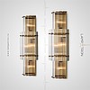 A series of wall lamps with rectangular dispatches made of blowing glass on a frame in the shape of a triangular prism