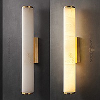A series of LED wall lamps with a cylindrical body made of natural Spanish marble
