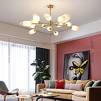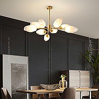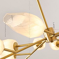 Caustration chandeliers with glass ceiling in the form of translucent unused crystals on a branchy frame