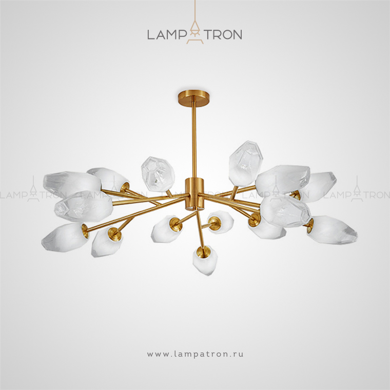 Caustration chandeliers with glass ceiling in the form of translucent unused crystals on a branchy frame