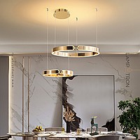A series of LED chandeliers in the form of a combination of rings of different diameters with crystal diffusers in the form of crystals