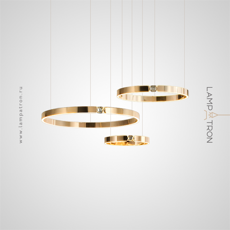 A series of LED chandeliers in the form of a combination of rings of different diameters with crystal diffusers in the form of crystals