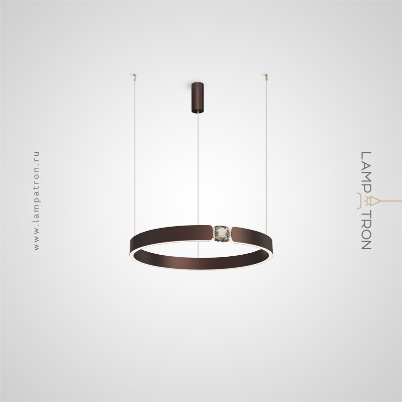 A series of LED chandeliers with crystal diffuser in the form of a crystal on a ring body with three pendants