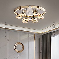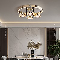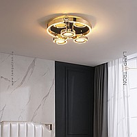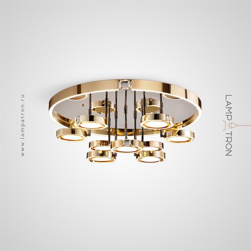 A series of ceiling LED chandeliers with crystal diffusers in the form of crystals on disk-shaped sources