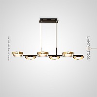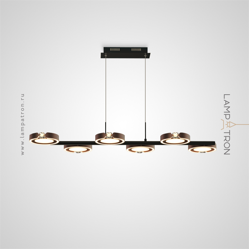 A series of slatted LED lamps with round sources decorated with crystal stones