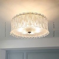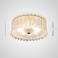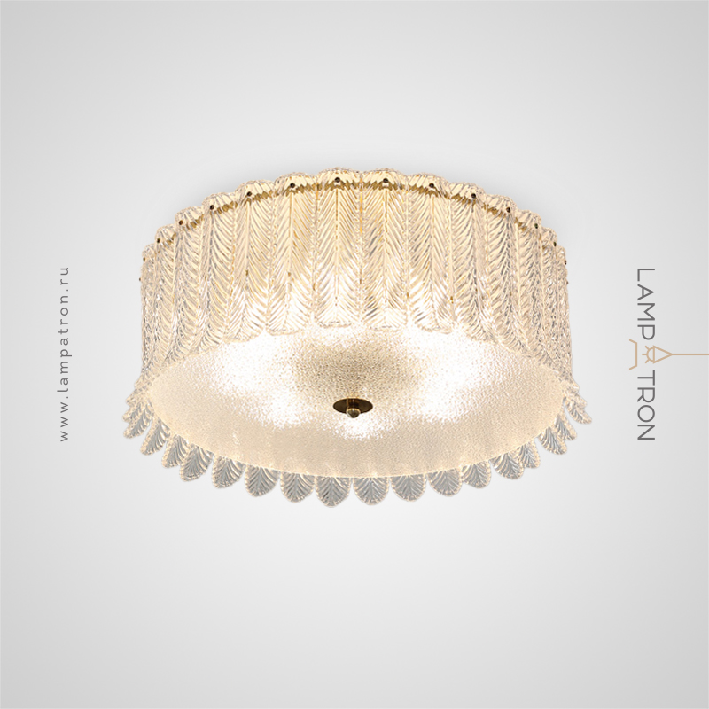 Ceiling chandelier with transparent diffusers in the form of feathers made of embossed glass