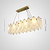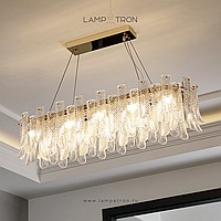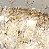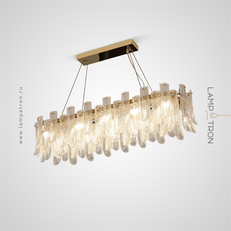A series of slatted luminaires with transparent diffusers in the form of feathers made of embossed glass