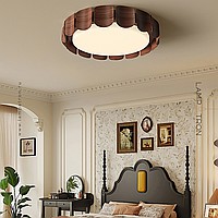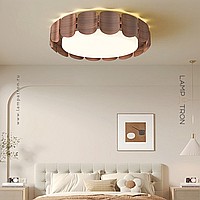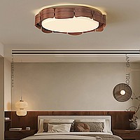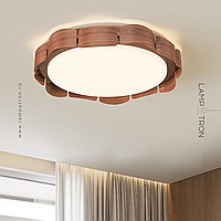 LED Ceiling Light Series Framed by Curved Metal Plates Painted to Look Like Wood