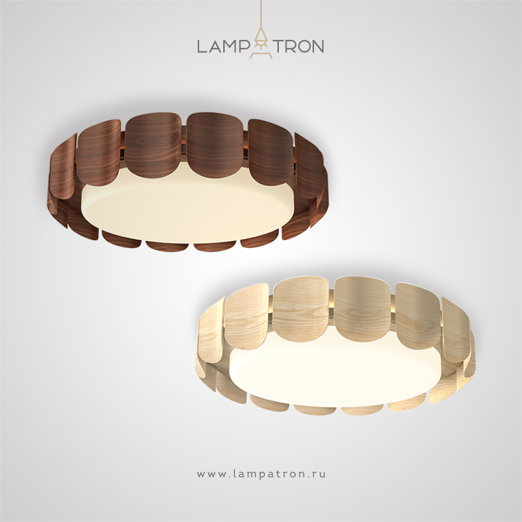 LED Ceiling Light Series Framed by Curved Metal Plates Painted to Look Like Wood