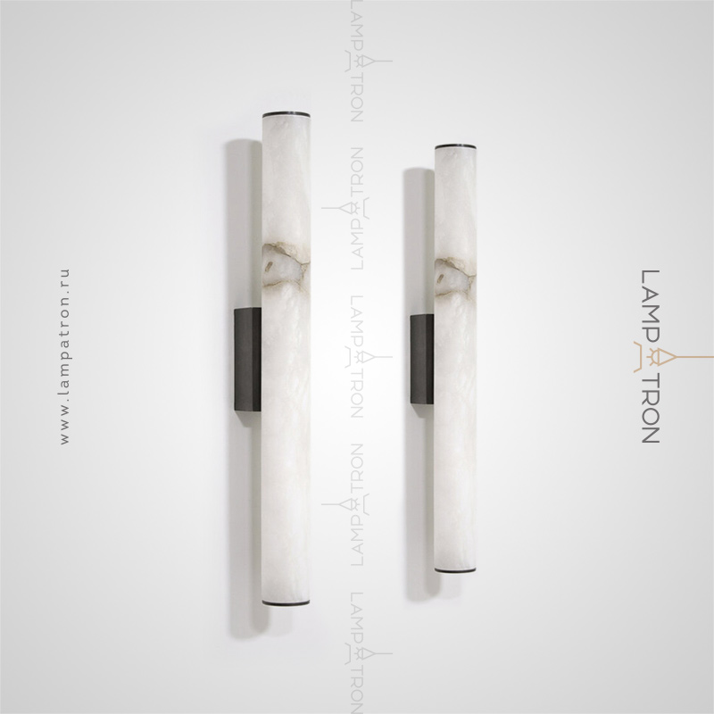 Wall LED lamp with an elongated cylindrical ceiling made of natural marble