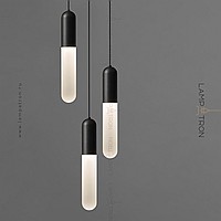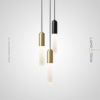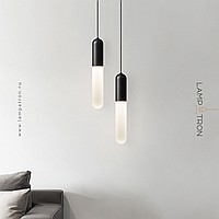 A series of pendant lights with a white cylindrical diffuser with a matte gradient effect