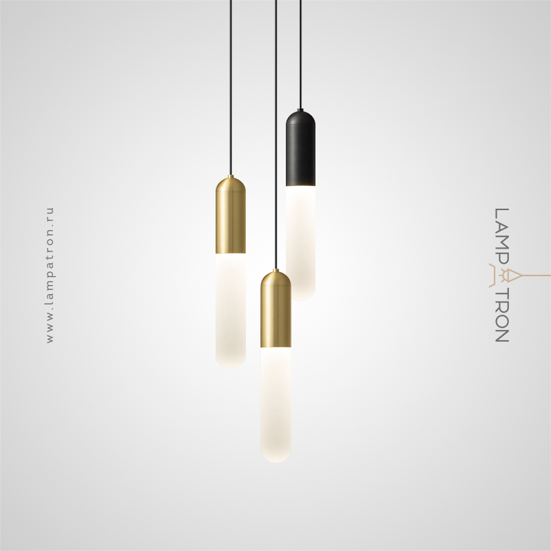 A series of pendant lights with a white cylindrical diffuser with a matte gradient effect
