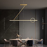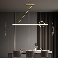 LED rack and pinion light with ring element on a diagonal ceiling post in a minimalist style