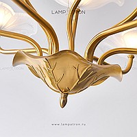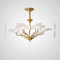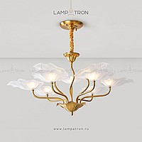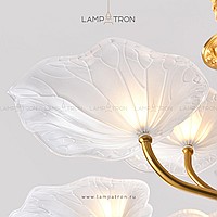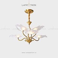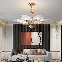 Chandelier with open glass ceiling in the form of stylized lotus leaves
