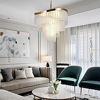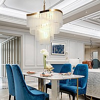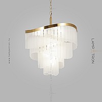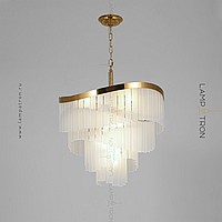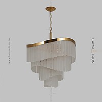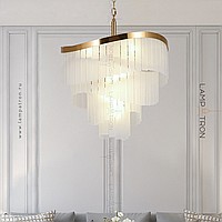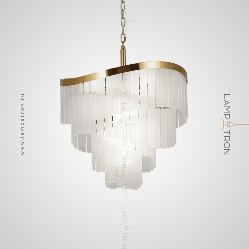 Designer chandelier with a spiral lampshade made of matte glass pendants of a rectangular shape