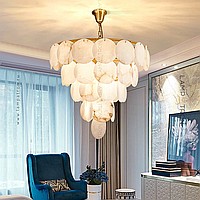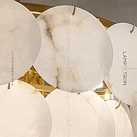 Designer chandelier with a multi -level lampshade of marble pendants of a round shape