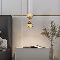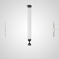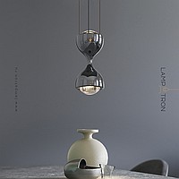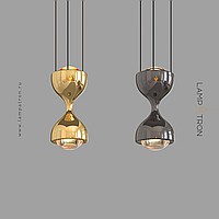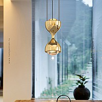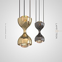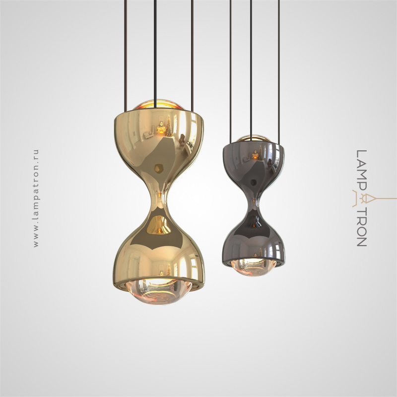 Pendant LED luminaire with two lenses in an hourglass-shaped metal case