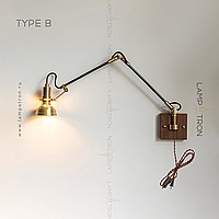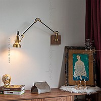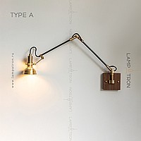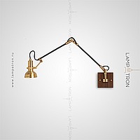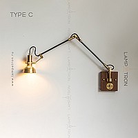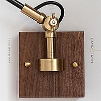 Sconces with a brass plafon of a cylindrical shape on an adjustable bracket with a wooden mount