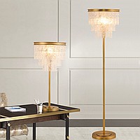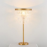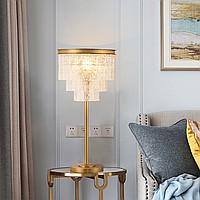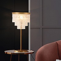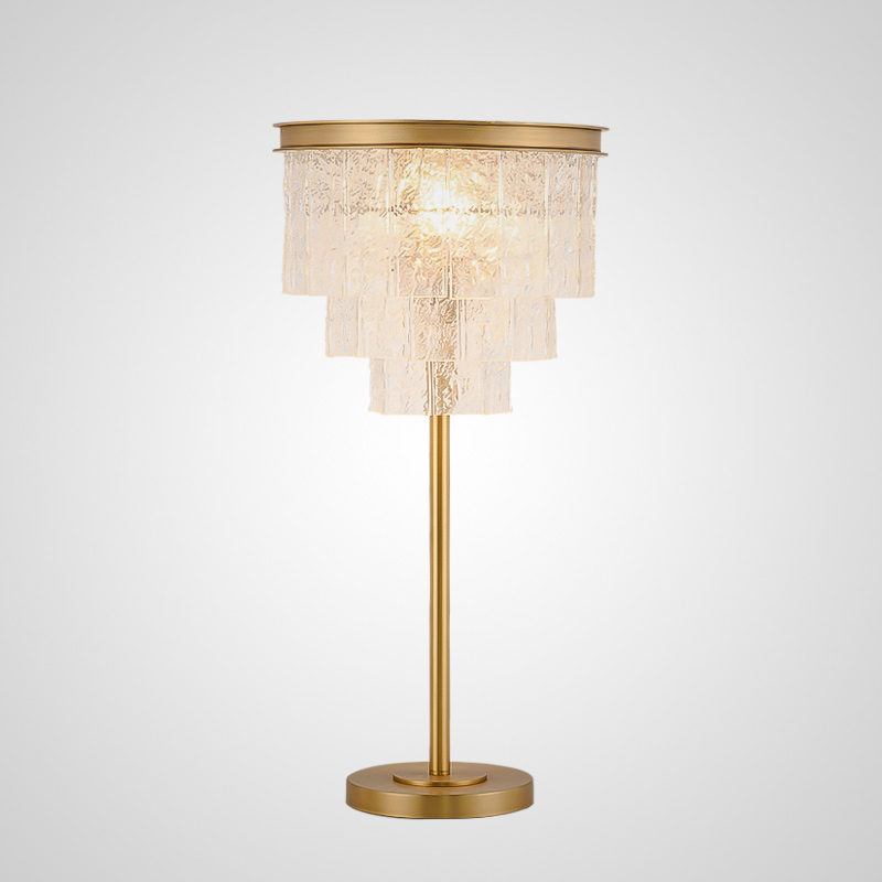 Modern table lamp with a lampshade from a cascade of glass plates