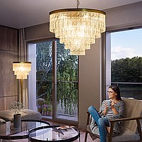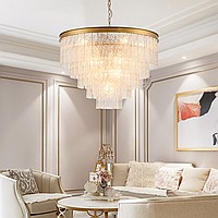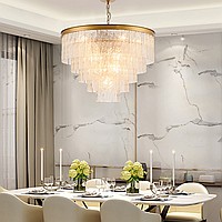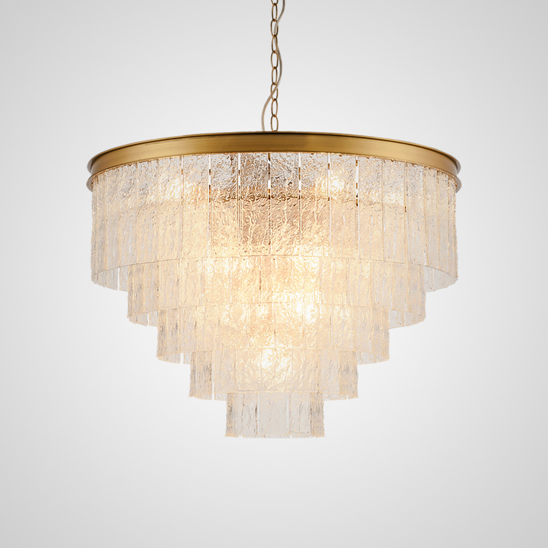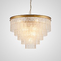 Slide — a series of designer chandeliers with glass pendants with a cozy relief of melting ice. This is happy and modern and classic.