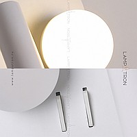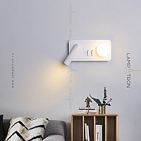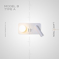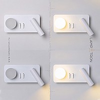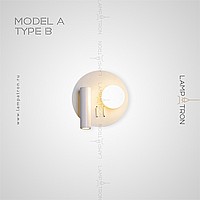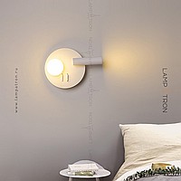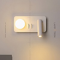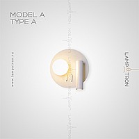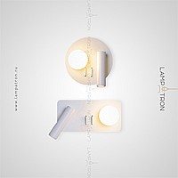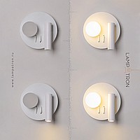A series of LED wall lamps with spherical and cylindrical shades on disc-shaped and rectangular bases