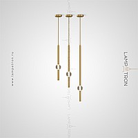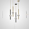 A series of pendant LED luminaires with crystal spherical shades on a cylindrical tubular body