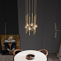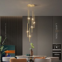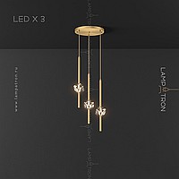 Ready-made combination of pendant LED lamps with crystal diamond-shaped shades