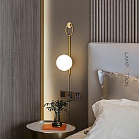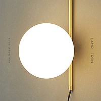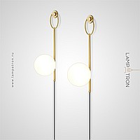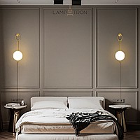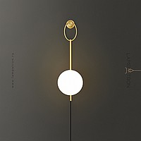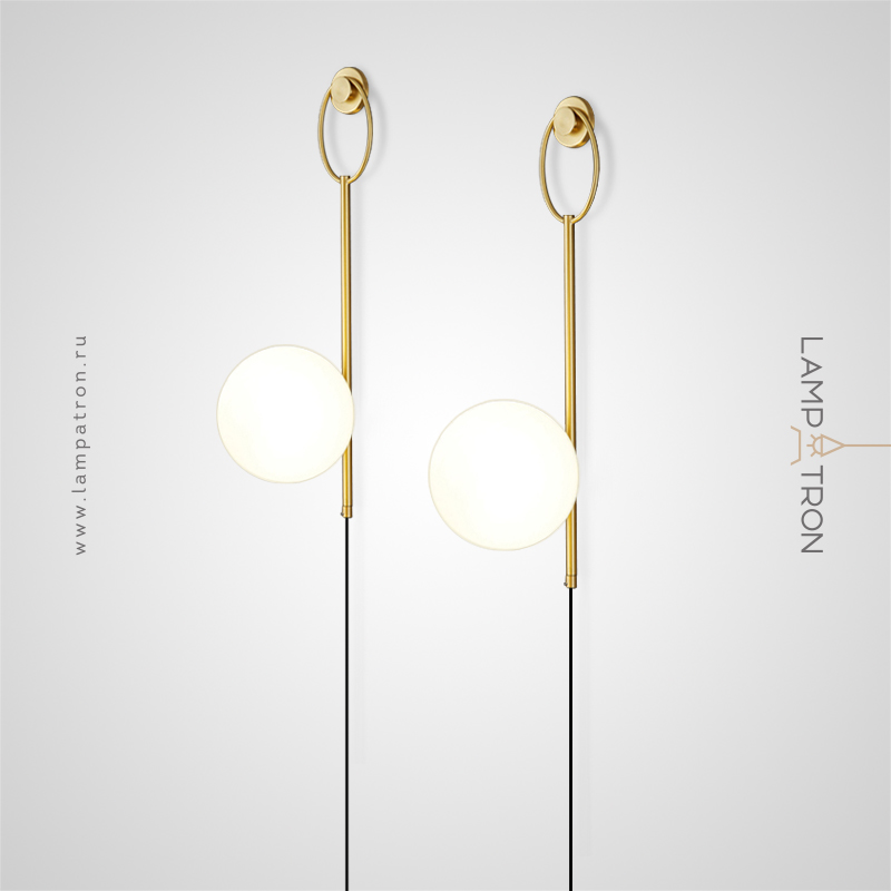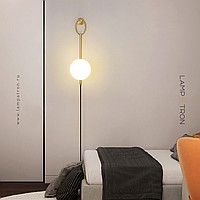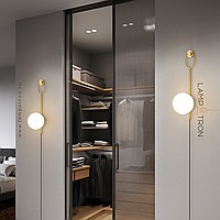 Wall lamp with glass spherical shade on a tubular housing with ring mount