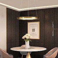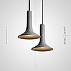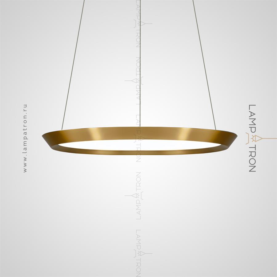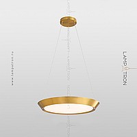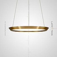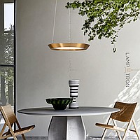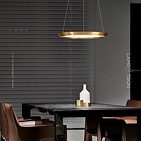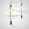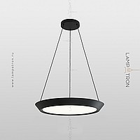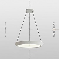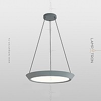 A series of LED lamps in the style of minimalism with a plafon in the form of a truncated disk on a string suspension