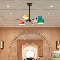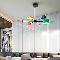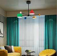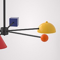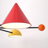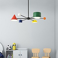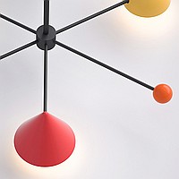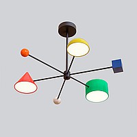 LED chandelier with a radial arrangement of ceiling and decorative elements in the form of geometric shapes