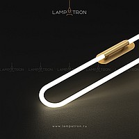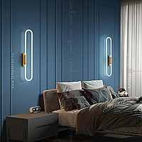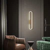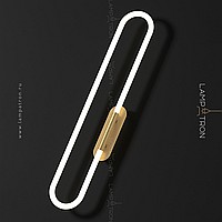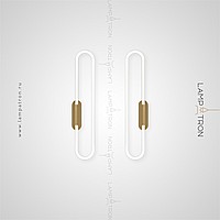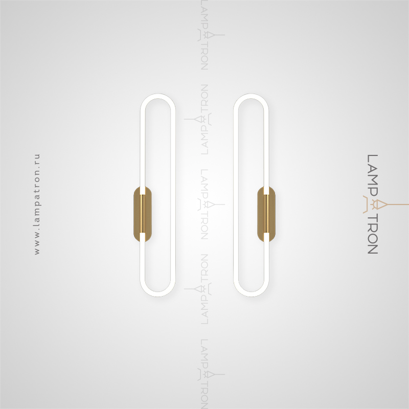 A series of paired wall lamps with tubular looped shades on a rounded mount