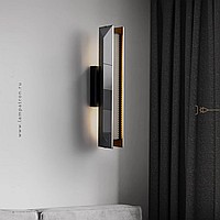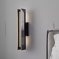 Wall lamp with crystal diffuser and anti-glare grille on elongated housing