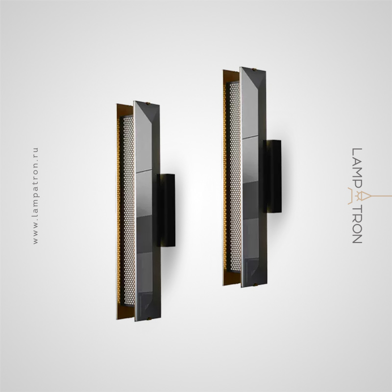 Wall lamp with crystal diffuser and anti-glare grille on elongated housing