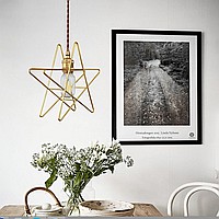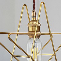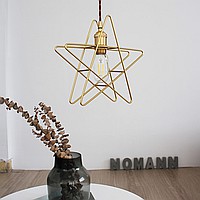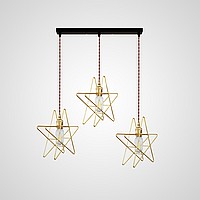 A lamp with a brass cartridge on a twisted wire and a wire design in the shape of a star. It is presented in two different modifications: with a voluminous frame and with rotating components of various sizes. Clarify additional information with our managers.