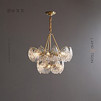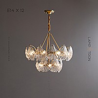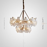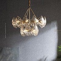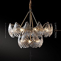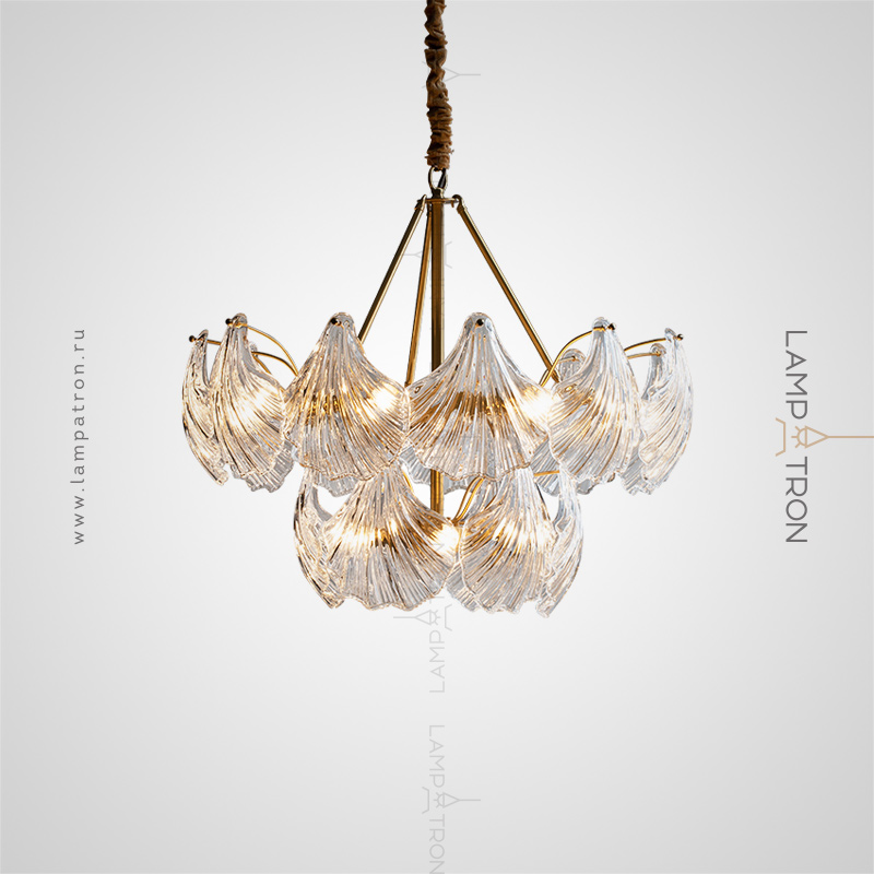 A series of two -tier chandeliers with glass ceilings in the shape of shells