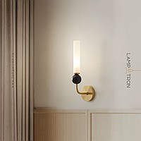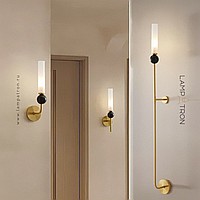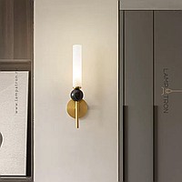Wall lamp with natural marble décor on brass stand