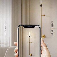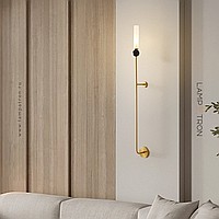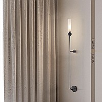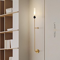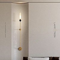 Wall lamp with natural marble décor on a long brass stand