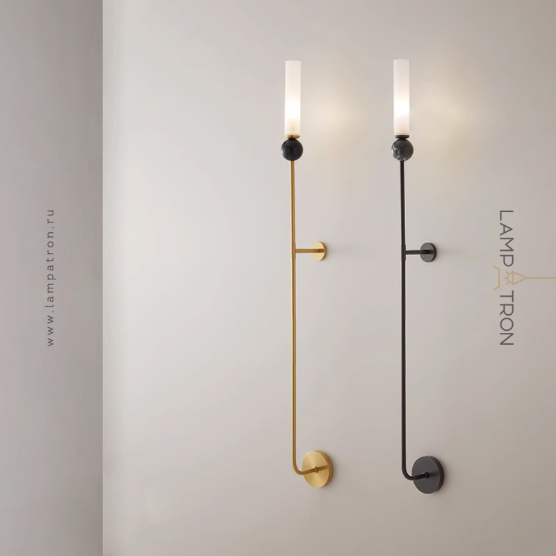 Wall lamp with natural marble décor on a long brass stand