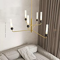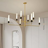 Chandeliers with brass beam frame and natural marble décor