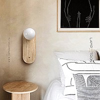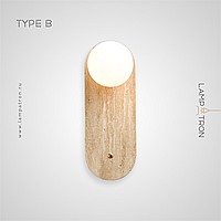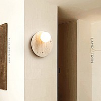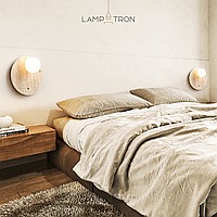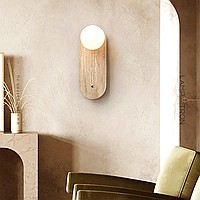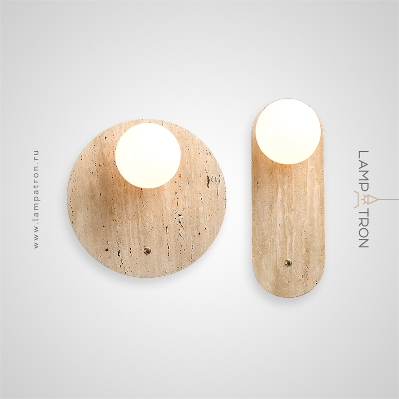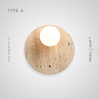 A series of wall lamps with a glass spherical shade on a disc-shaped and rounded stone base