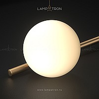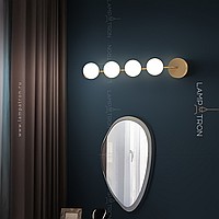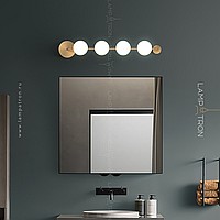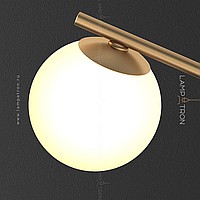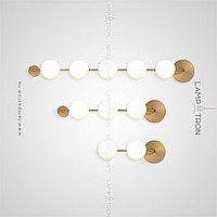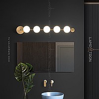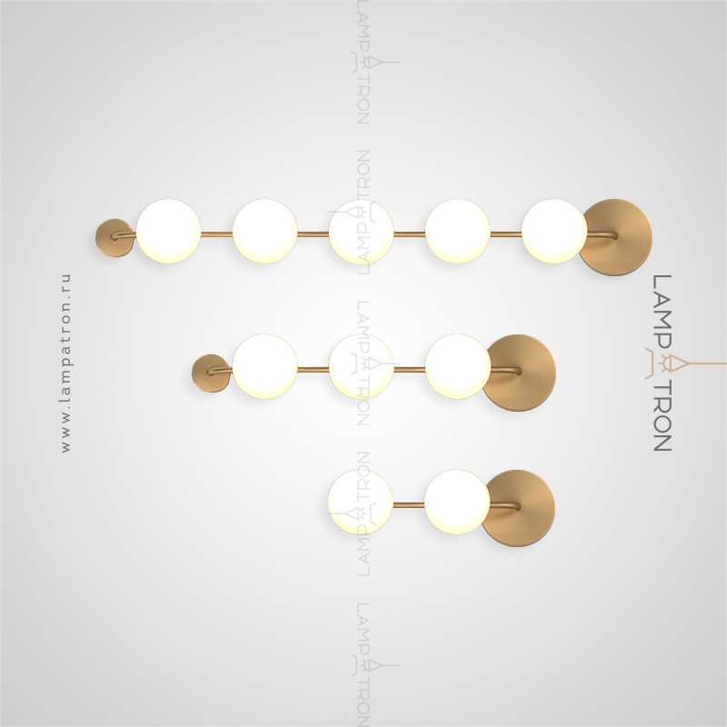 A series of wall lamps with white spherical glasses of glass on a horizontal rail with round mounts
