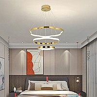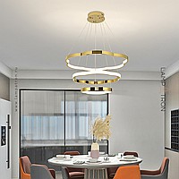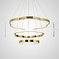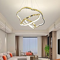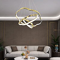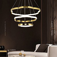 A series of LED chandeliers in the form of a combination of three wave-shaped rings