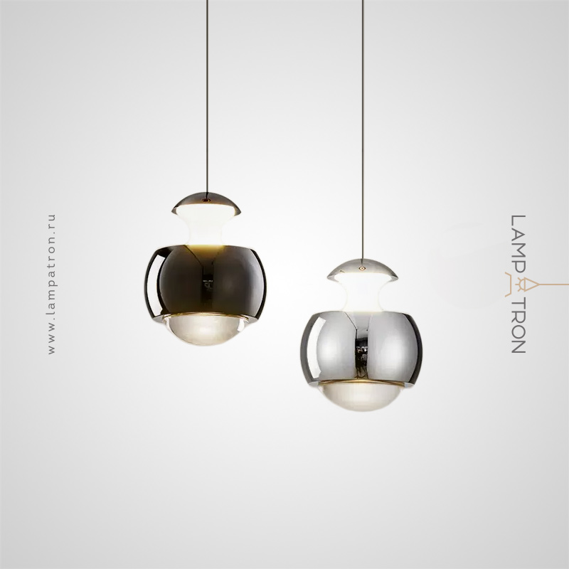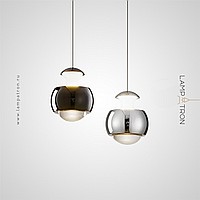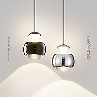 A series of LED pendant luminaires with an original spherical body and a combination of diffused and directed light through an optical lens