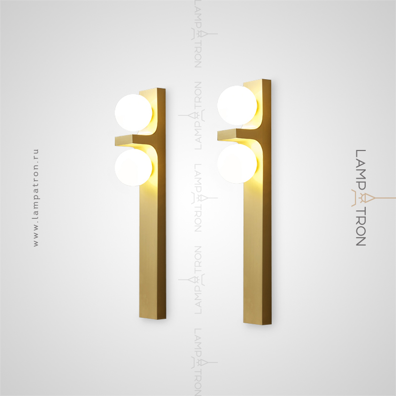 Wall lamp with two white spherical glasses made of glass on a rectangular base with a partition