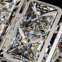 A series of in-line LED luminaires with a rectangular body made of crystal elements with a crystal in a frame in the center