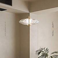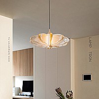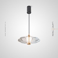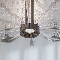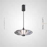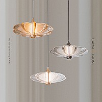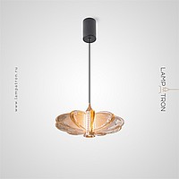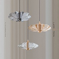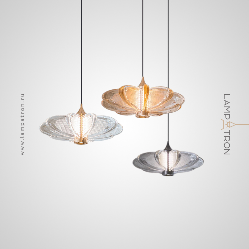 A series of pendant LED luminaires with leaf-shaped diffusers and lensed center source